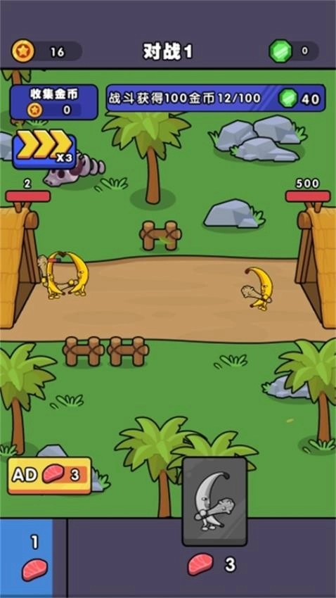 无敌大师是一款十分有趣的策略对战游戏。香蕉人的战斗历程会持续演变,时代变迁会对他们产生影响,同时他们也能逐步习得攻击能力,为每场战斗助力,助力玩家赢得胜利。对战时,你可以留意其他信息,从中发现关键要素,为自己创造更多攻击优势。当然,你也得及时获取信息,解锁武器后马上让士兵使用,快速提升他们的战斗力。收集大量食物能为士兵补充体力,增加获胜几率。如果你对这款游戏感兴趣,就赶紧来体验一下吧!