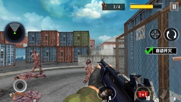自动开火按钮设计,瞄准敌人就会自动开枪射击。
