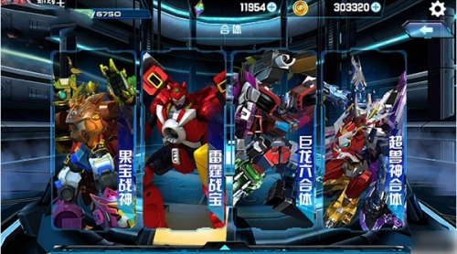 目前游戏内已推出的合体机甲总计4款,它们分别是源自《果宝特攻》世界观的果宝战神、出自《快乐酷宝》世界的雷霆战宝、来自《钢铁飞龙》世界的巨龙六合体,以及《超兽武装》世界的超兽神合体。