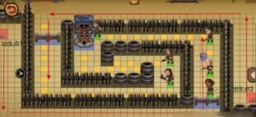 3、再往后的两个关卡难度同样不高,我们只需将所有人员集中到一个位置,通过设置栅栏来改变丧尸的行进路线。按照图示在左侧放置栅栏,迫使下方路径的丧尸走向带有铁丝的区域,再配合炮台的攻击,就能消耗它们的血量,从而减轻我方这边的压力。