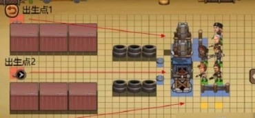 5、最后一关的1、2、3号出生点刷新的都是普通地面丧尸,4号出生点则是携带气球的飞行丧尸。我们可以先设置栅栏,在两侧各留出一个缺口,让两辆坦克顶在缺口最前端。右下角放置1到2个炮台来攻击飞行丧尸,卡妈和奶妈的位置可以互相调换,这样能让输出更稳定。