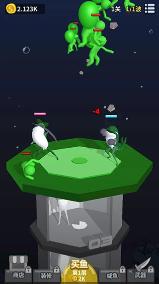 5、而随着不断的买鱼进行建造大楼,在大楼的上方会遇到许许多多的敌人;