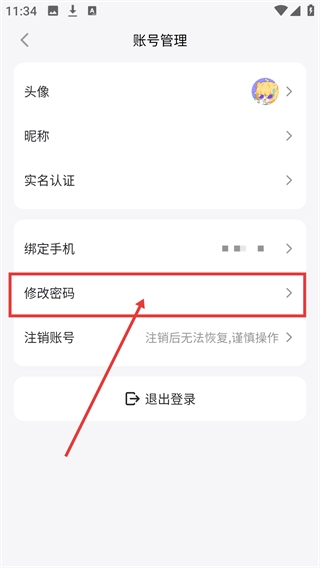 3、在账号管理页面,点击【修改密码】选项,进入密码修改界面,准备更新账号密码呀。