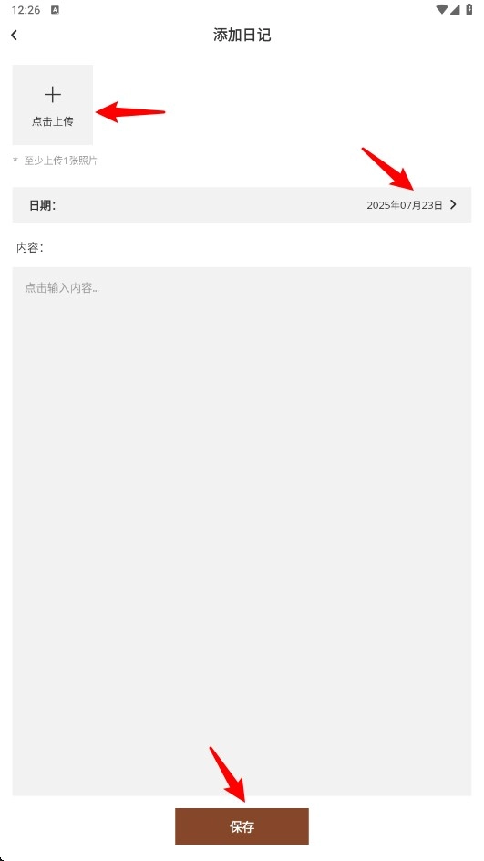 4、上传今日的穿搭图片,选择日期,记下今日的穿搭灵感之后,点击保存,这样之后就能随时查看了。