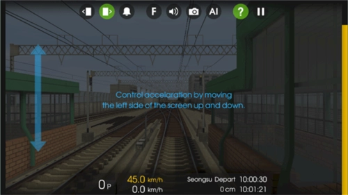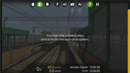 4、当火车停下来时,你可以通过【F】图标改变火车方向,您还可以点击【相机】图标改变驾驶视角,或者点击【AI】激活自动驱动系统自动驾驶。