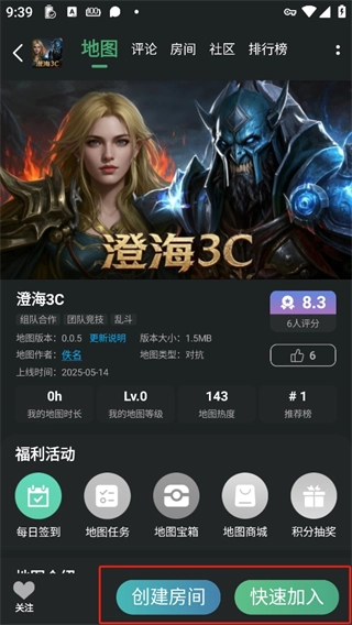 3、可以点击创建房间和朋友一起玩耍也可以点击快速加入。