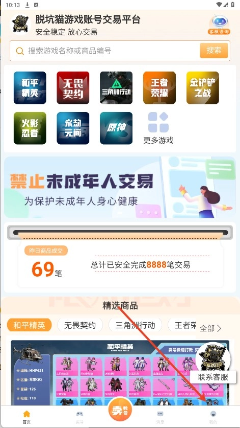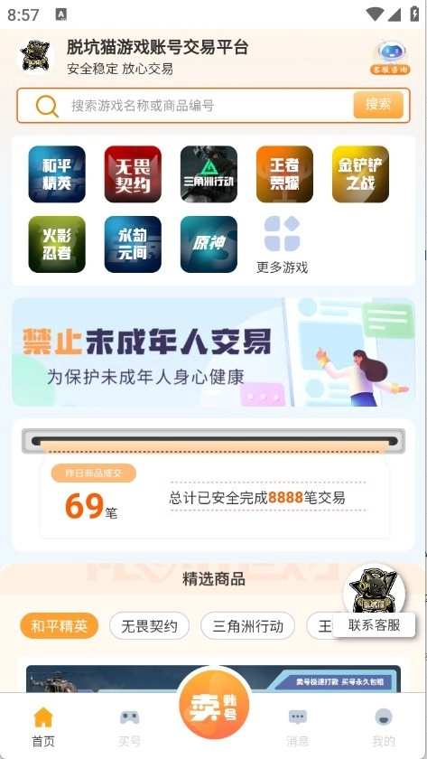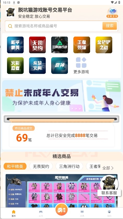 脱坑猫是一款交易便捷的软件,这里会更新大量热门游戏账号资源,还提供不少包赔的便利服务。整个交易过程公开透明,能更好地保障用户的账号安全,同时具备一键估号功能,让用户轻松掌握市场动态变化。感兴趣的话,快来52pkvr体验吧!