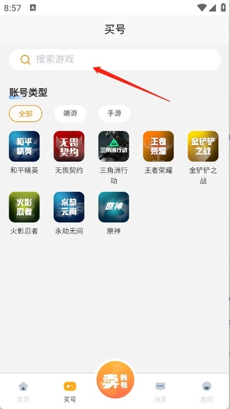 2、进入到首页页面汇集了很多的游戏账号交易类型。