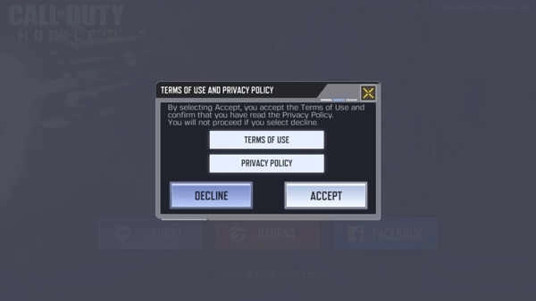 3、首次游戏会出现这个条款提示,大家不要被左侧蓝色按钮给蒙骗了,此处需要点右侧【ACCEPT】同意条款。