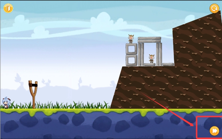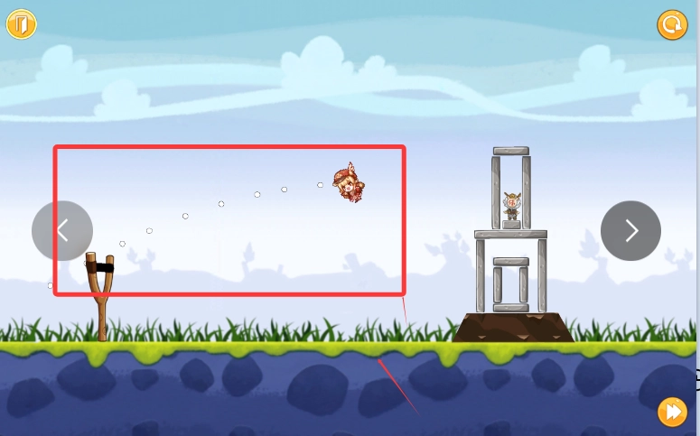 2、之后利用弹弓弹力击打障碍物。