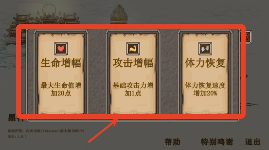 3、选定难度后,还需要从多个基础增益选项中挑选一个作为初始能力加成。