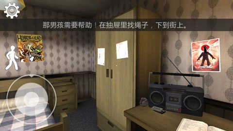 2、然后你需要在家里找到一条绳子下楼,绳子在床柜子左侧第一个格子里。