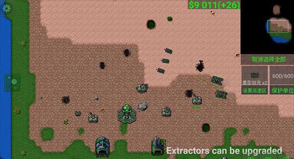 游戏最重要的是资金我们现在只有少的可怜的资金,怎么办呢?当然是找一个黑漆漆的大坑,然后让建造车在上面建‘’资金提取器”,钱就开始源源而来了,可升级,建议初期就升。