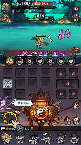3、主线关卡采用自动战斗的方式,通过战斗可以获取体力使用八卦炉;