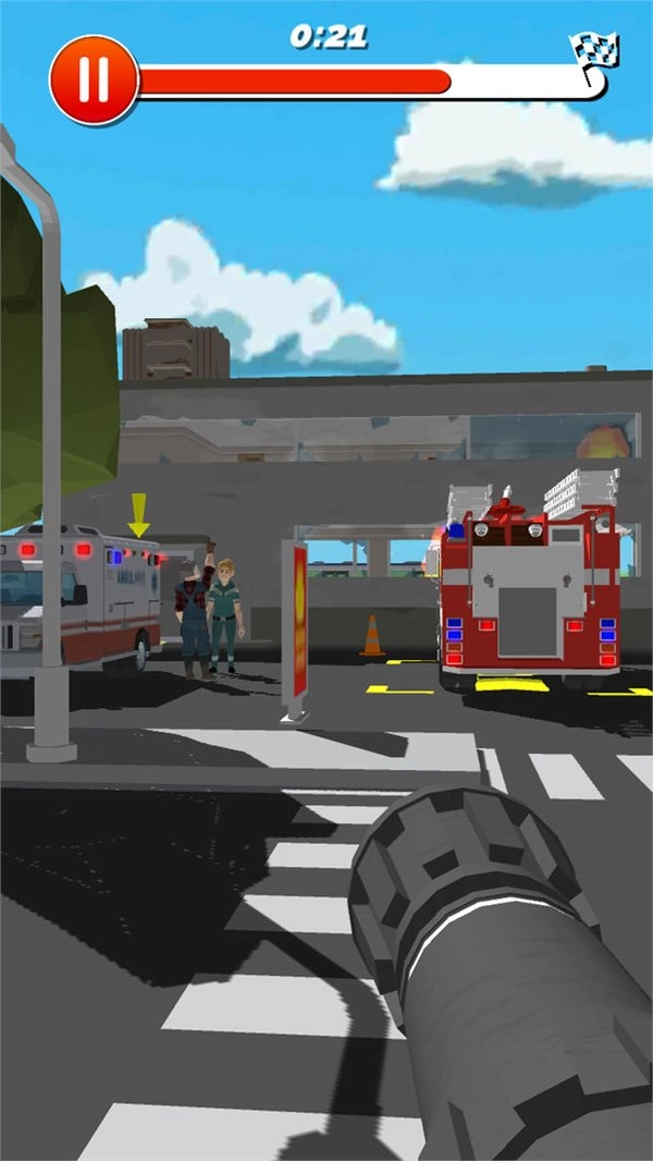 一个写实风格的卡通3D开放世界,在这个世界里,你能够从火灾与各类紧急状况中,拯救人们、房屋和汽车。