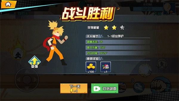 2、将敌人打败后便可获得游戏的胜利,从而获得想对应的奖励;进入到下一关