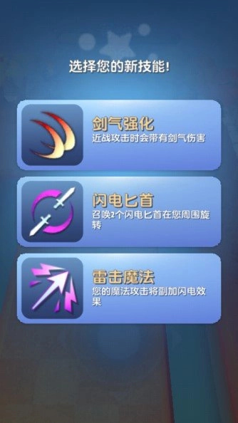 3、每次升级可以在随机的3个技能中进行选择