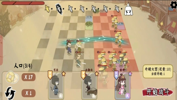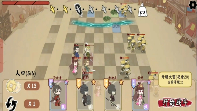 游戏设有人口与等级系统,通过升级大营可以提高人口上限,进而影响可部署的棋子数量。烧脑三国大挑战更新日志