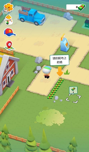 2、进入游戏后,跟随系统的引导提示,我们通过滑动屏幕控制角色移动,将地上的钱捡起来,