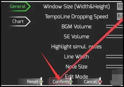 3.设置自制谱面数值和背景音乐,然后点击Confirm试玩自制谱面