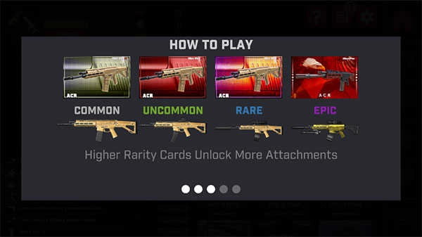 3、卡片稀有度由低至高依次为白色、绿色、蓝色和紫色,品质越高代表可解锁的枪械越强大;