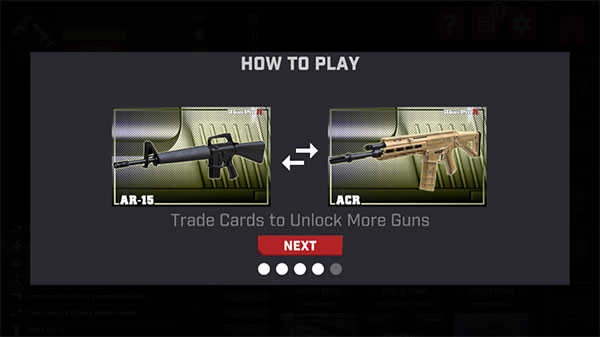 1、并安装真实枪械模拟器2后,启动游戏会有一段新手引导帮助你快速上手,使用卡片便能解锁心仪的枪支;