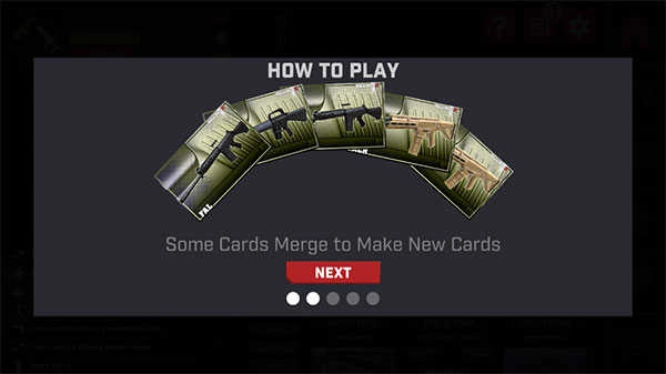 2、利用多张卡片合成更高阶的新卡片,以此获取更强大的武器;