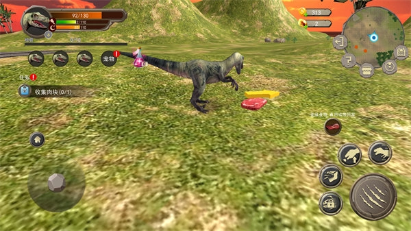 2、恐龙会自动消耗饱食度,需要及时的进食肉块补充饱食度,所以时刻关注恐龙的状态是必要的。