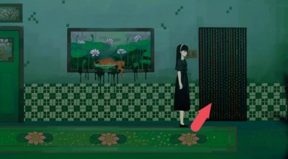 1、美术风格:选用墨绿色水彩色调搭配中式画风,融入复古海报、老式电视机、录像带等元素,构建出阴森诡谲的氛围。