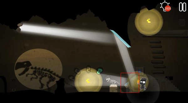 14、调整下图所示位置处红框的镜片,在墙上获得一个恐龙的遗骸图片。