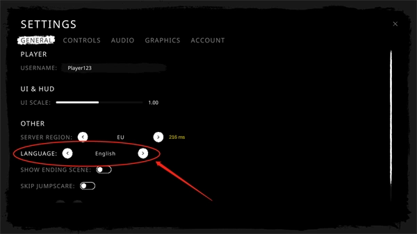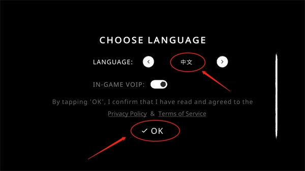 1、如下图所示,这是首次进入游戏时的界面,点击【English】右边的按钮调设语言。