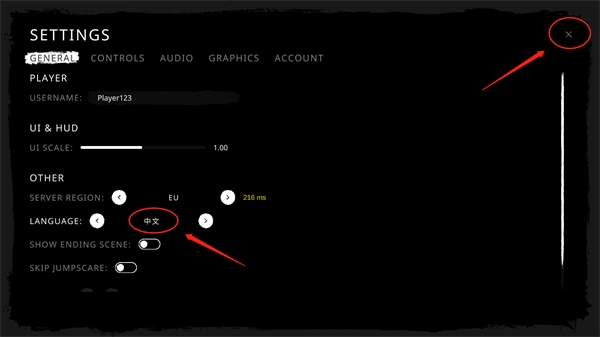 3、待切换至【中文】时,点击右上角的【X】。
