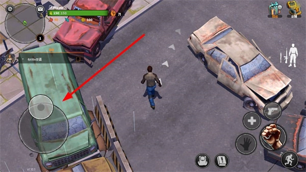 1、先定位到显示有与NPC交谈提示的区域,借助左侧的移动操控功能朝目标位置移动,靠近后即可触发交互操作。