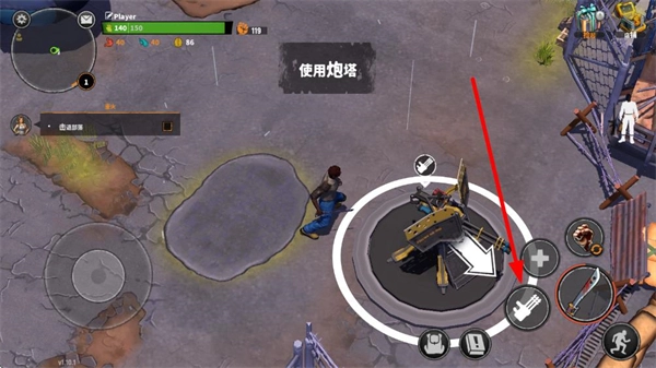3、完成击杀后根据指引找到炮塔设施,靠近后点击对应使用按钮,进入炮塔操作状态,为后续抵御威胁做准备。