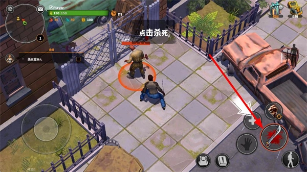 2、接取击杀突变体任务后,切换右侧对应武器,悄悄靠近目标突变体,待进入攻击范围后点击攻击按钮。
