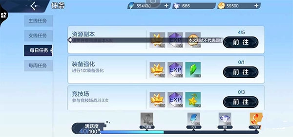 每日任务基本上就是一些比较容易的任务了,天天都可以做,尽管任务要求不高,不过奖励还是比较不错的,而且每天达到相应的活跃度还可以领取额外的奖励。