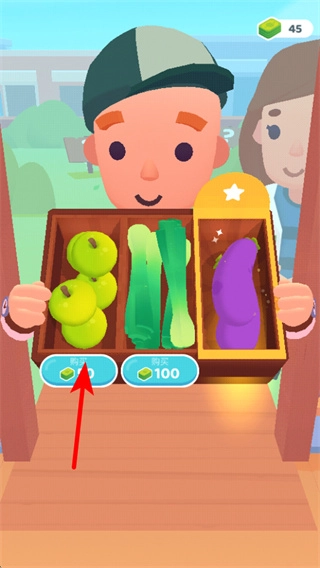 1、在食材采购界面,根据当前拥有的资源如绿色方块,选择对应价格的食材如苹果点击购买,储备制作菜品所需的原料,留意避免超支。