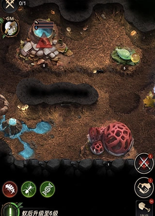 1、蚁巢中隐藏着许多生存必备的资源,你可以操控工蚁规划蚁道,开采天然泉眼、优质玉露、鼠妇的群落聚集地......为蚁巢提供稳定的食物支持。