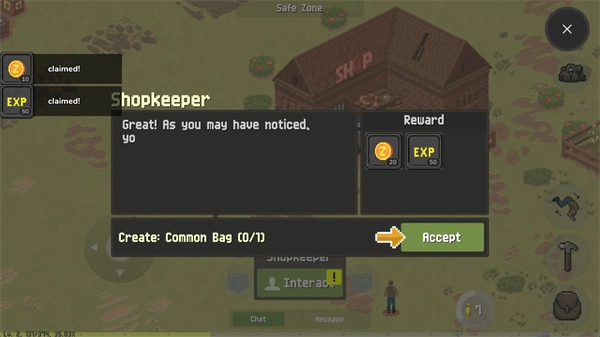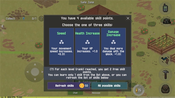 5、当玩家靠近僵尸后会自动攻击,击败僵尸会获得经验和一些随机掉落物。