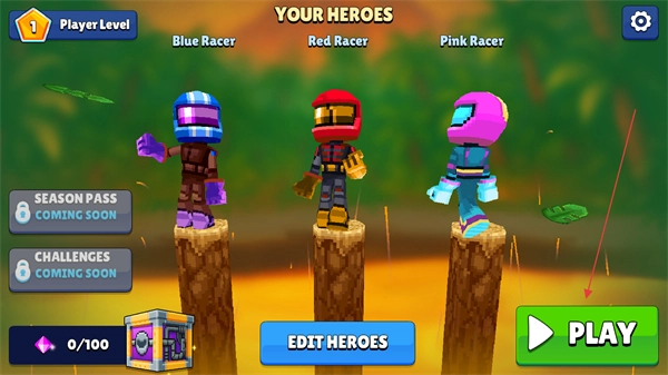 1、在YOUR-HEROES界面挑选已解锁的英雄,点击右下角的PLAY按钮就能进入对局。