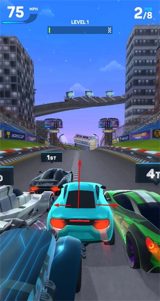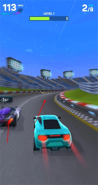 2、沿赛道弯道调整行驶路线,保持车速,维持领先位置,提升关卡完成效率。
