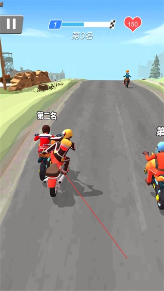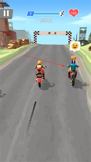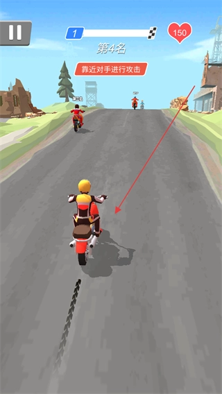 1、驾驶摩托接近前方的对手,按照提示发动攻击,争取从第4名提升排名、向前晋级。