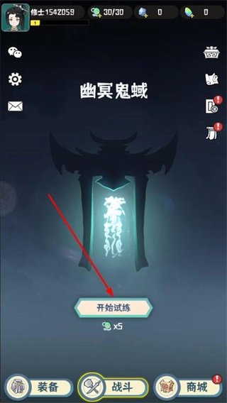 1、进入游戏主界面后,消耗相应道具并点击“开始试炼”,即可开启仙门挑战关卡。