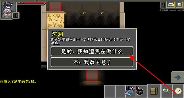 3、遇到洞口时,选择对应的确认选项,跳入洞口进入下一层地牢,过程中会触发剧情提示。
