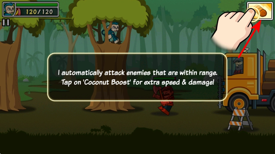 3、点击右上角的Coconut Boost按钮,可获得额外速度与伤害加成,这是提升战斗能力、快速击败敌人的有效手段。