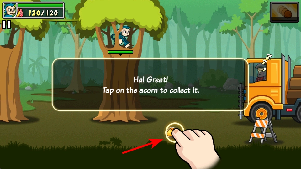4、战斗结束后,点击地面上的橡果道具进行收集,这是积累游戏资源的重要操作,收集资源可助力后续养成与升级。