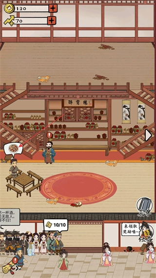 国风画风与江南小镇场景完美契合,搭配NPC的市井对白与随机事件,全方位还原古代酒馆经营的日常,让玩家能够沉浸式感受古代商人的经营乐趣与生活气息。