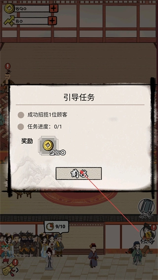 3、点击游戏右下角的任务图标按钮,可以通过完成任务获得铜钱。