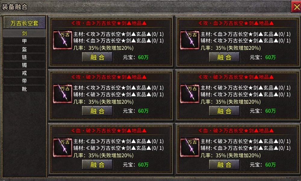 将两件单属性的装备融合成一件双属性装备,可以把攻击和防御属性装备融合成一件攻防兼备的装备,也可以将两把攻击属性装备融合在一起获得极致的输出装备。