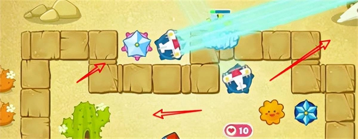 这一关最关键的是在开局阶段,我们得打掉场上的道具,打掉之后就能获得更多武器。